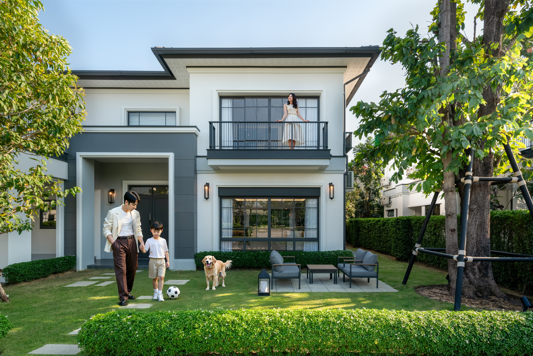 เริ่มต้นด้วยการถ่ายภาพอสังหาริมทรัพย์จากสถานที่จริง (หรือใช้ภาพถ่ายคุณภาพสูงที่ลูกค้ามีอยู่แล้ว) จากนั้นจึงใช้เทคโนโลยี AI ขั้นสูงในการเพิ่มองค์ประกอบต่างๆ เข้าไปในภาพ ไม่ว่าจะเป็น “บุคคล” “สมาชิกในครอบครัว” “สัตว์เลี้ยง” “ยานพาหนะ” เพื่อสร้างบรรยากาศที่สมจริงและมีชีวิตชีวา ภาพที่ได้จึงพร้อมนำไปใช้งานเชิงพาณิชย์ได้ทั้งสำหรับทำโฆษณา (Commercial Ads) หรือโพสต์ลงบนโซเชียลมีเดียอย่าง Facebook และ Instagram